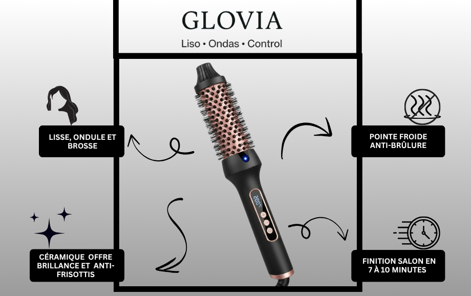La boîte contient uniquement brosse GLOVIA. Les accessoires (gant, pinces, housse) sont en option pour compléter votre achat.