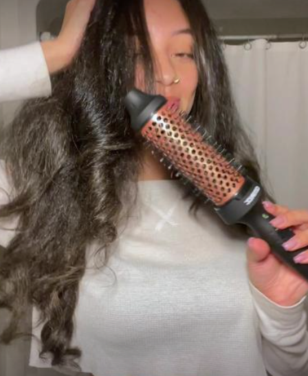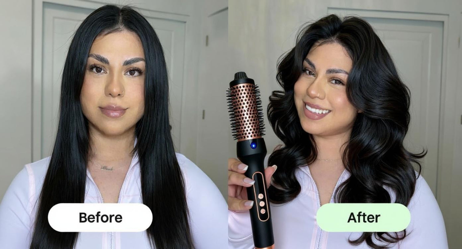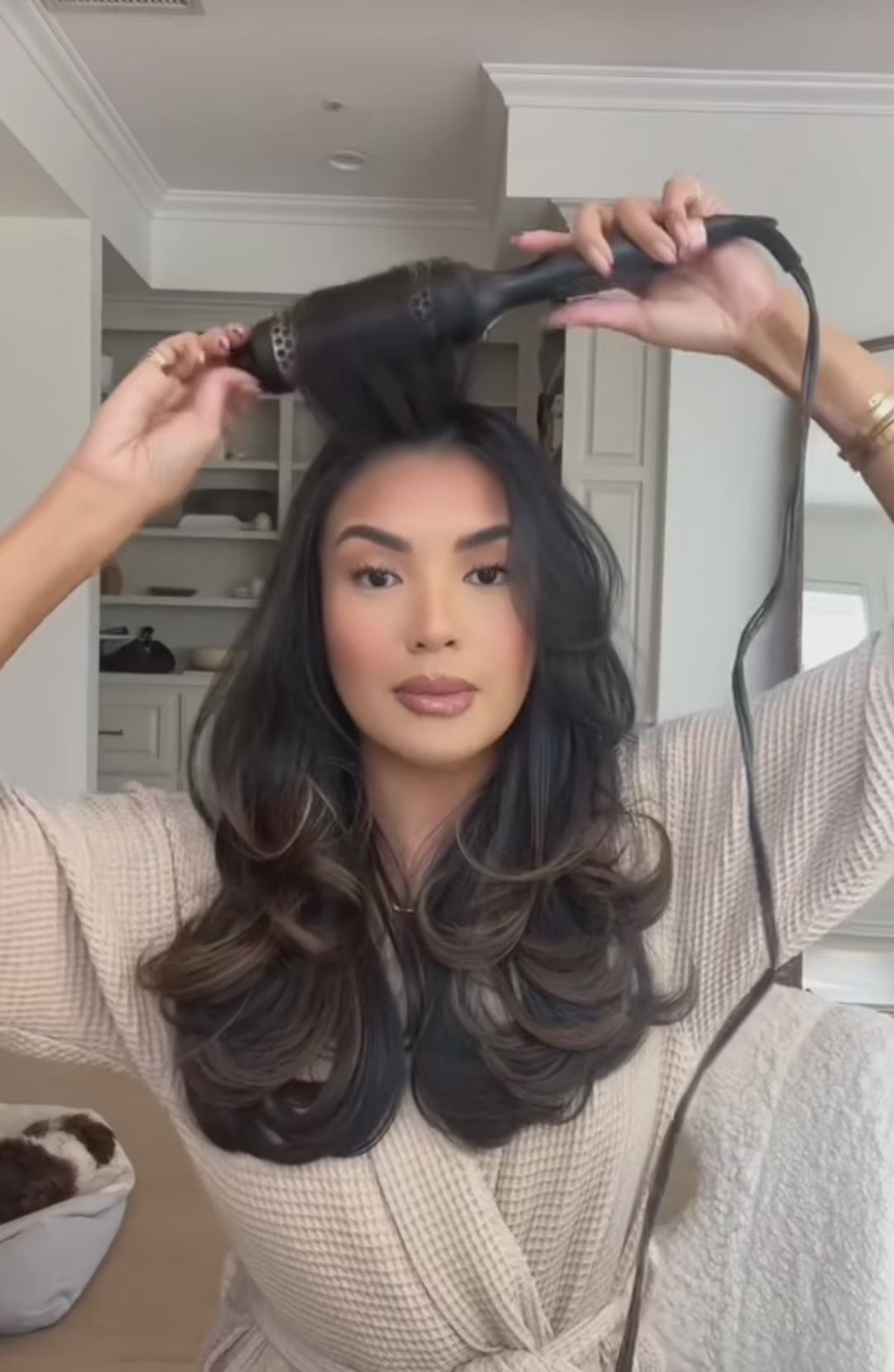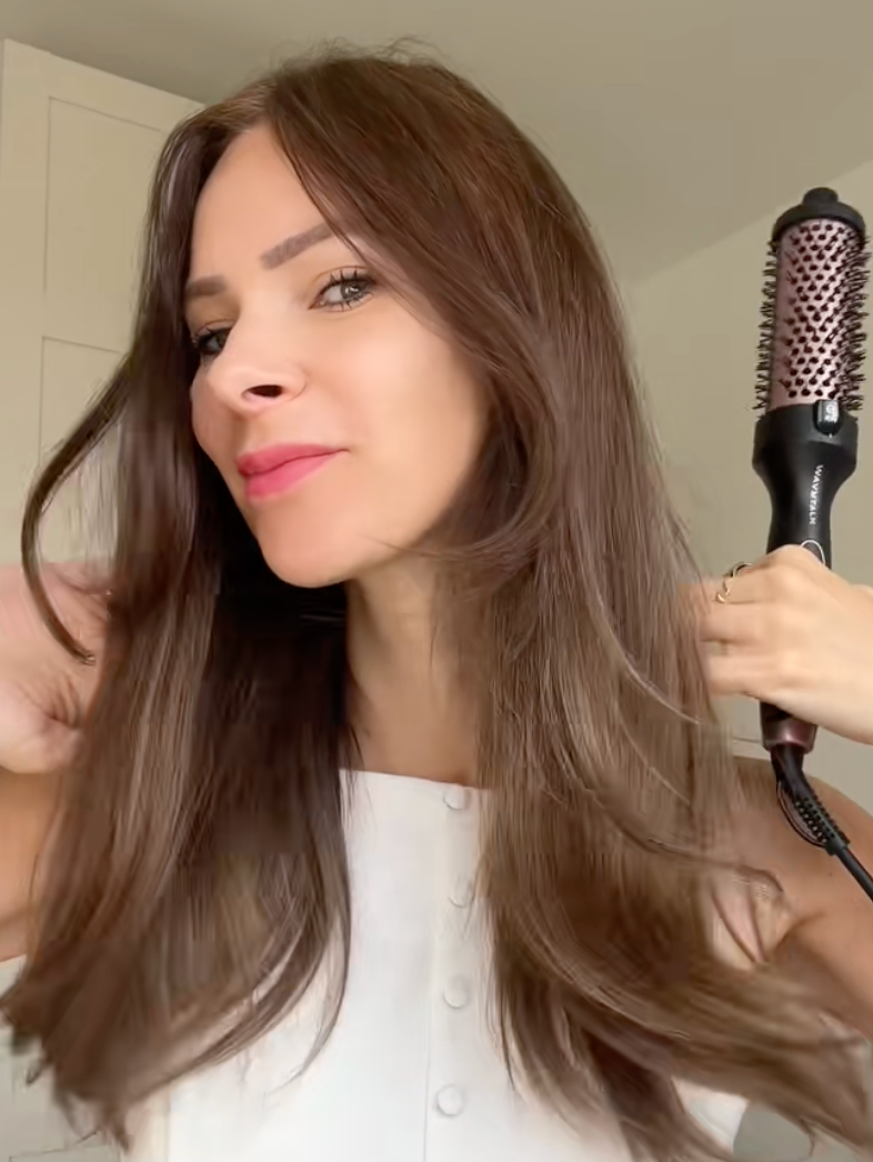 Notre brosse thermique 3-en-1 s'utilise sur cheveux secondes pour lisser , créer des ondulations souples ou redonner du volume .