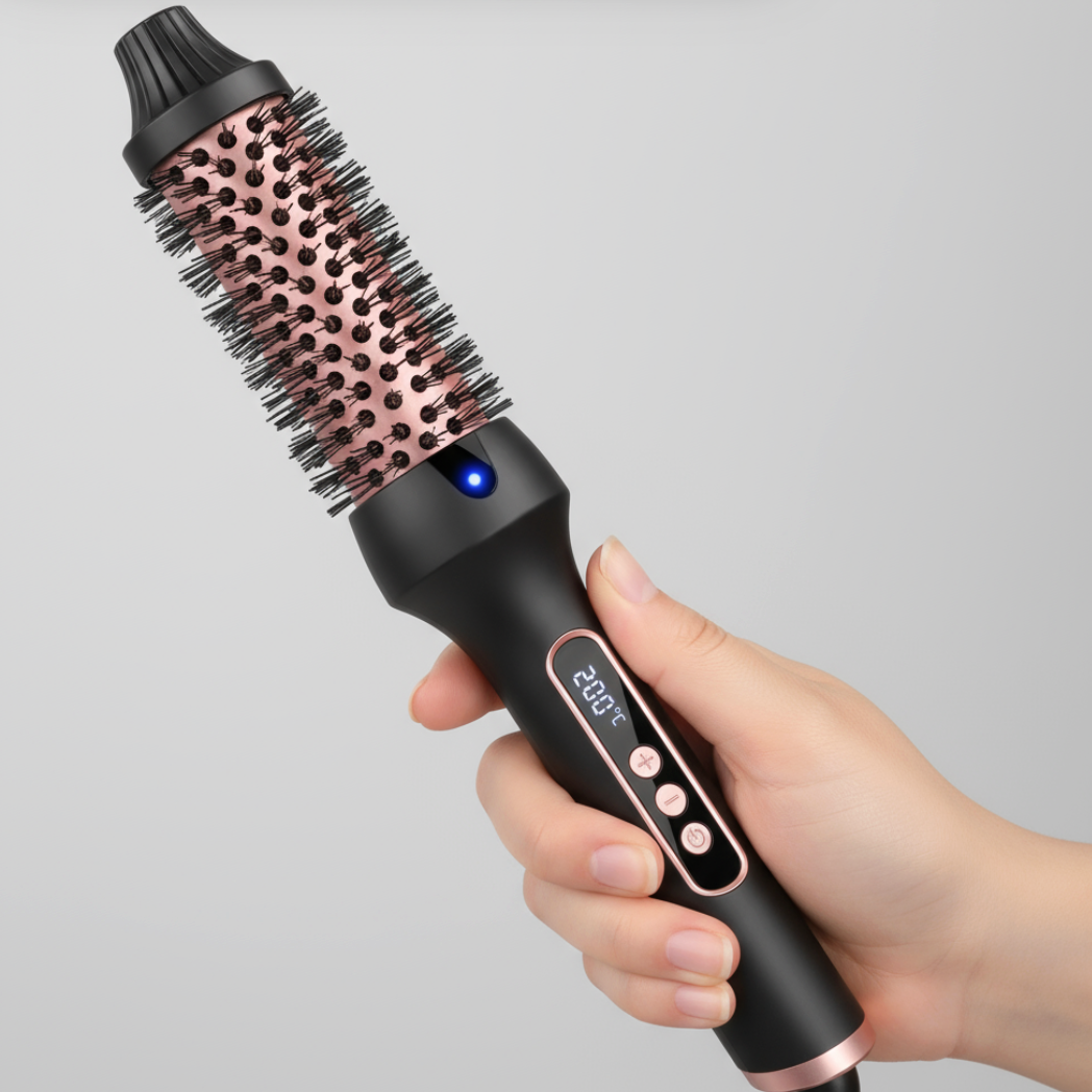 Ondule ou discipline en quelques passages. Sur cheveux n'importe quels cheveux. Température maîtrisée (120–200 °C), picots anti-brûlure, câble rotatif. Résultat net qui tient la journée, sans abîmer la fibre.